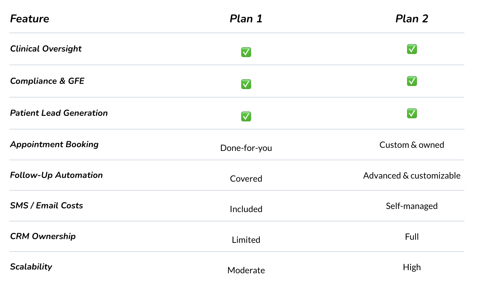 Both plans include clinical oversight.